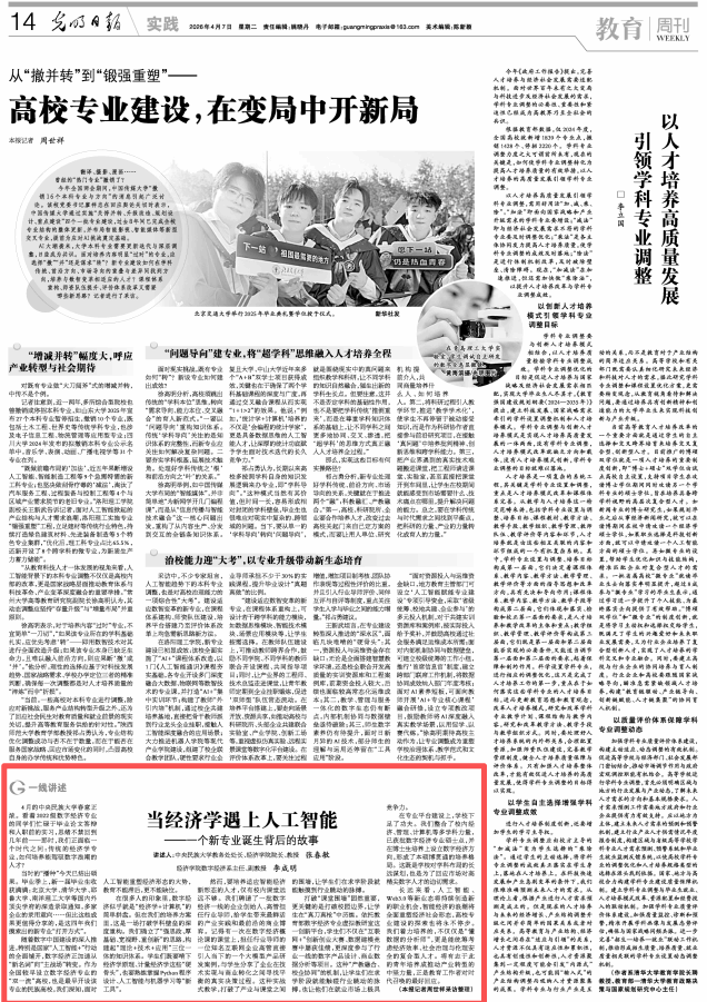 随着数字中国建设的深入推进,特别是国家“人工智能+”行动的全面铺开,数字经济正加速从“新名词”向“主战场”转变。作为全国较早设立数字经济专业的“双一流”高校,也是最早开设该专业的民族高校,我们深知,面对人工智能重塑经济形态的大势,教育不能滞后,更不能缺位。