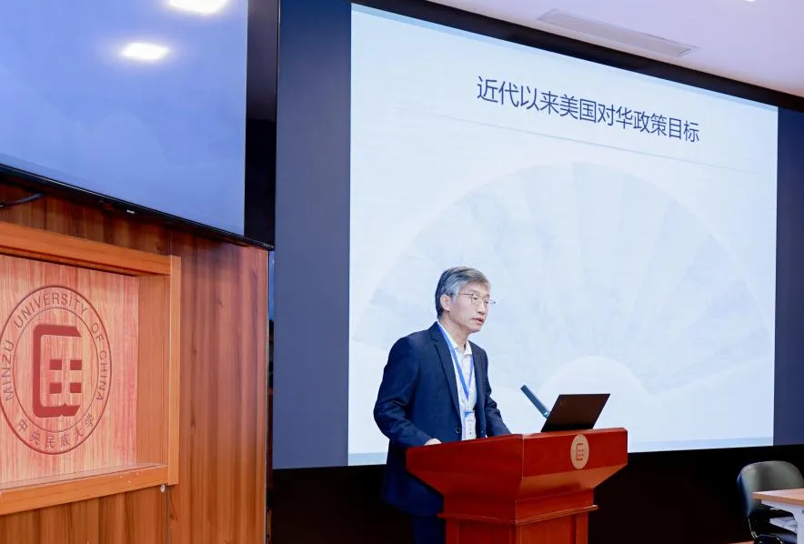 在主题报告环节,中央民族大学中国少数民族研究中心杨圣敏教授、北京大学历史学系王立新教授和吉林大学国际关系研究所刘德斌教授,分别围绕突厥学研究的战略意义、美国对华政策目标、战后国际体系的重构与中国周边关系的再定位等方面议题作出阐释,深化了与会者对中外关系史研究“为何研究”“研究何处”的认识与思考。
