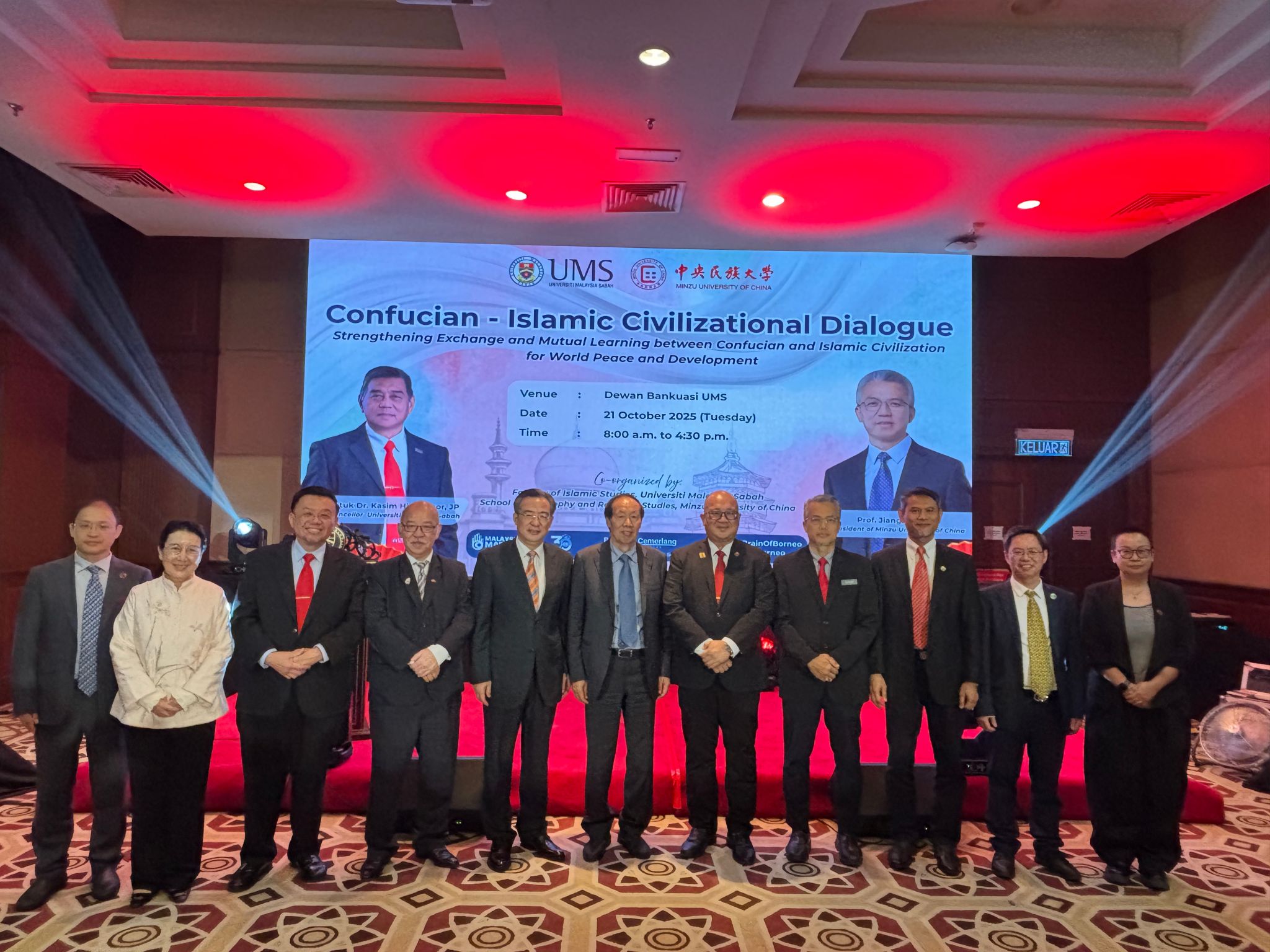 新闻网讯 10月21日,由中央民族大学、马来西亚沙巴大学及中国驻哥打基纳巴卢总领馆共同主办的“儒伊文明对话会”在马来西亚沙巴大学举行。中国驻哥打基纳巴卢总领事朱兴龙,中国文物保护基金会理事长刘玉珠,沙巴大学常务副校长卡欣代表萨菲里,沙巴州旅游、文化及环境部长刘静芝,沙巴州前首席部长杨德利等出席并致辞。中央民族大学党委副书记、校长强世功通过视频方式参会,并发表了题为《加强文明互鉴 以东方智慧共促和平发展》的主旨演讲。