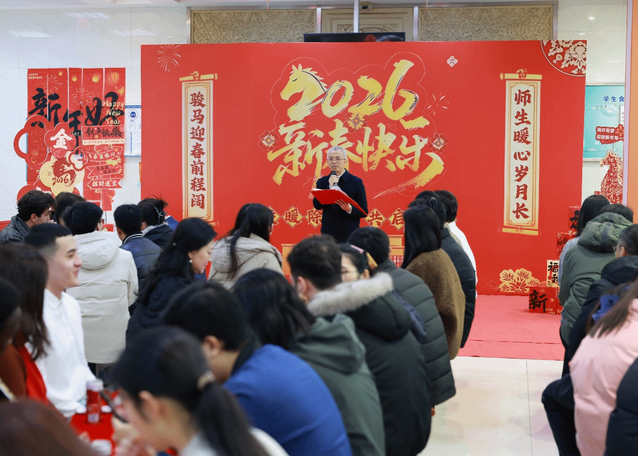 在学生食堂,学校为春节留校的每一名学子精心准备了新春福袋,校领导与中外留校学生、辅导员、班导师代表欢聚一堂、共进午餐、贺岁迎新。强世功校长代表学校向全体留校学生致以新春祝福,勉励大家在新的一年激扬“一马当先”的锐气,永葆“马不停蹄”的干劲,在知行合一的征途上跃马扬鞭、蹄疾步稳,心有所悦、业有所成,让青春在奋斗中绽放光彩。